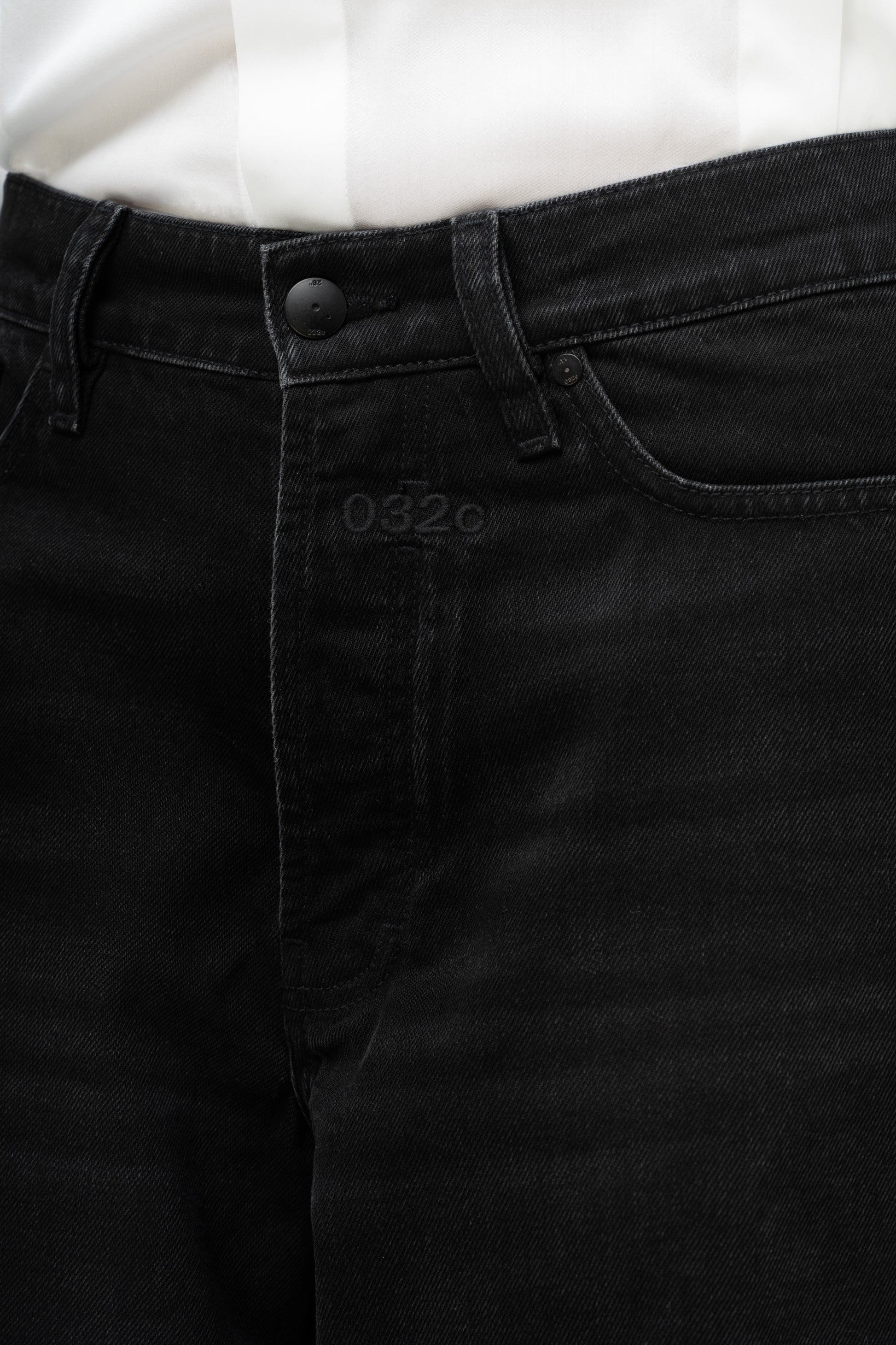 Oversized, low rise loose cut denim pants in a classic black wash. This 5 pocket style features a tonal logo embroidery and a 032c leather patch on the back waistband.