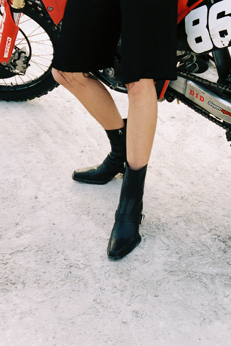 Created in an exclusive collaboration with the Berlin-based fashion brand 032c, these three limited-edition biker boots embody the shared style and aesthetics of 032c and COPENHAGEN STUDIOS. Each of the three designs blends raw edginess with refined minimalism, combining bold style with timeless versatility.