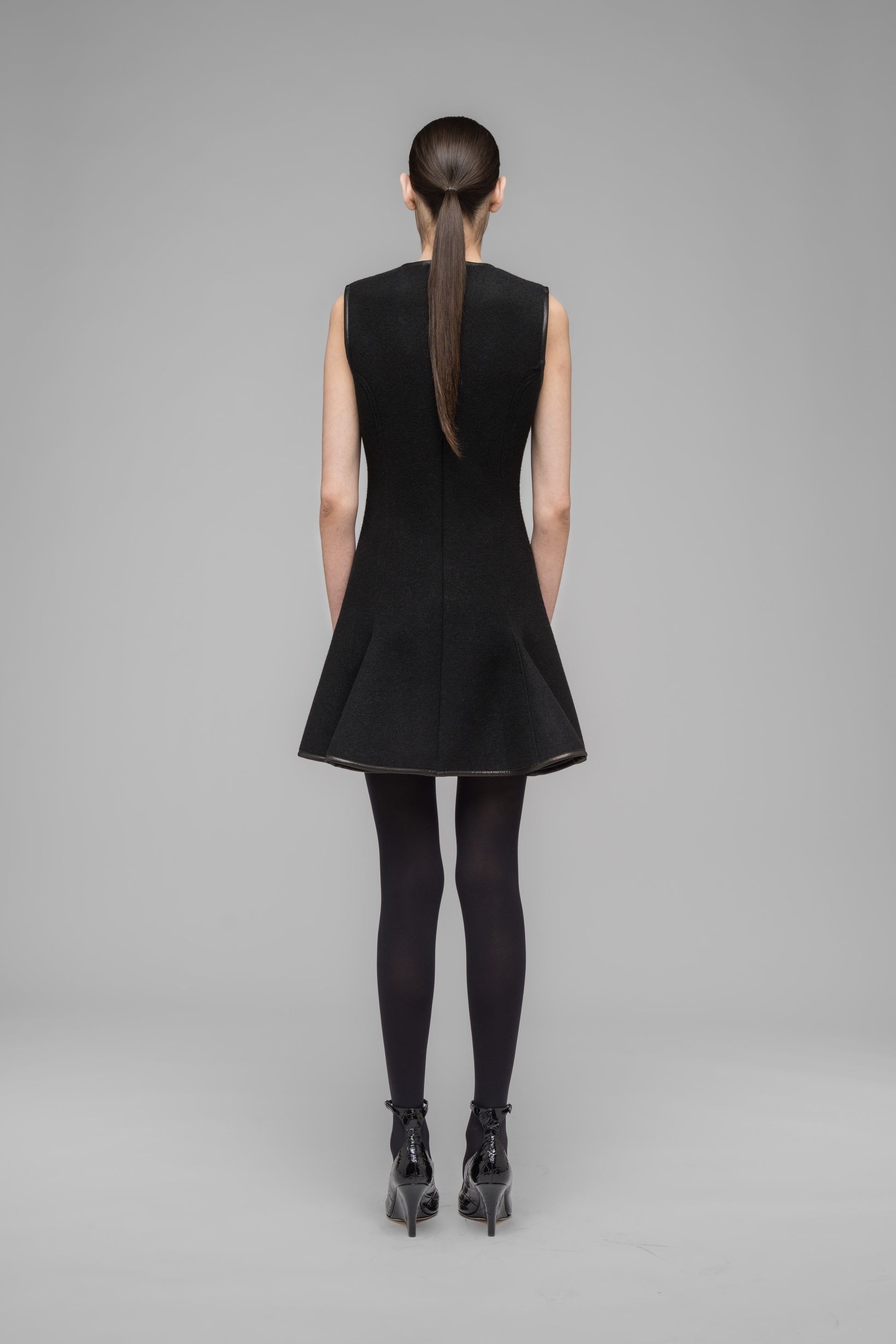 Short dress in neoprene wool with 032c logo embroidery on the side and fully finished binding.