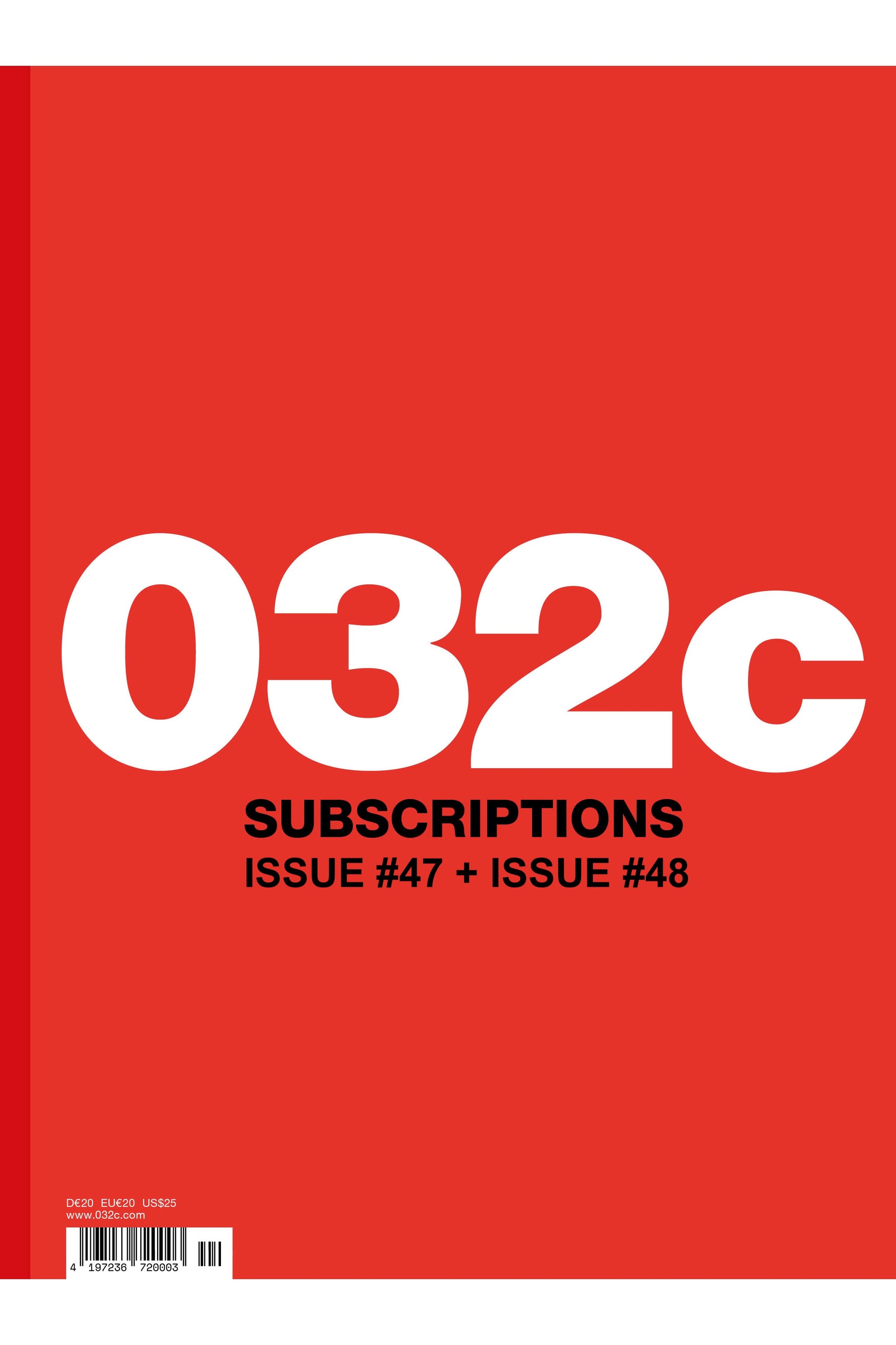 Purchase a one-year subscription and receive the next two issues of 032c: Issue #47 (Summer 2025) and Issue #48 (Winter 2025/2026).