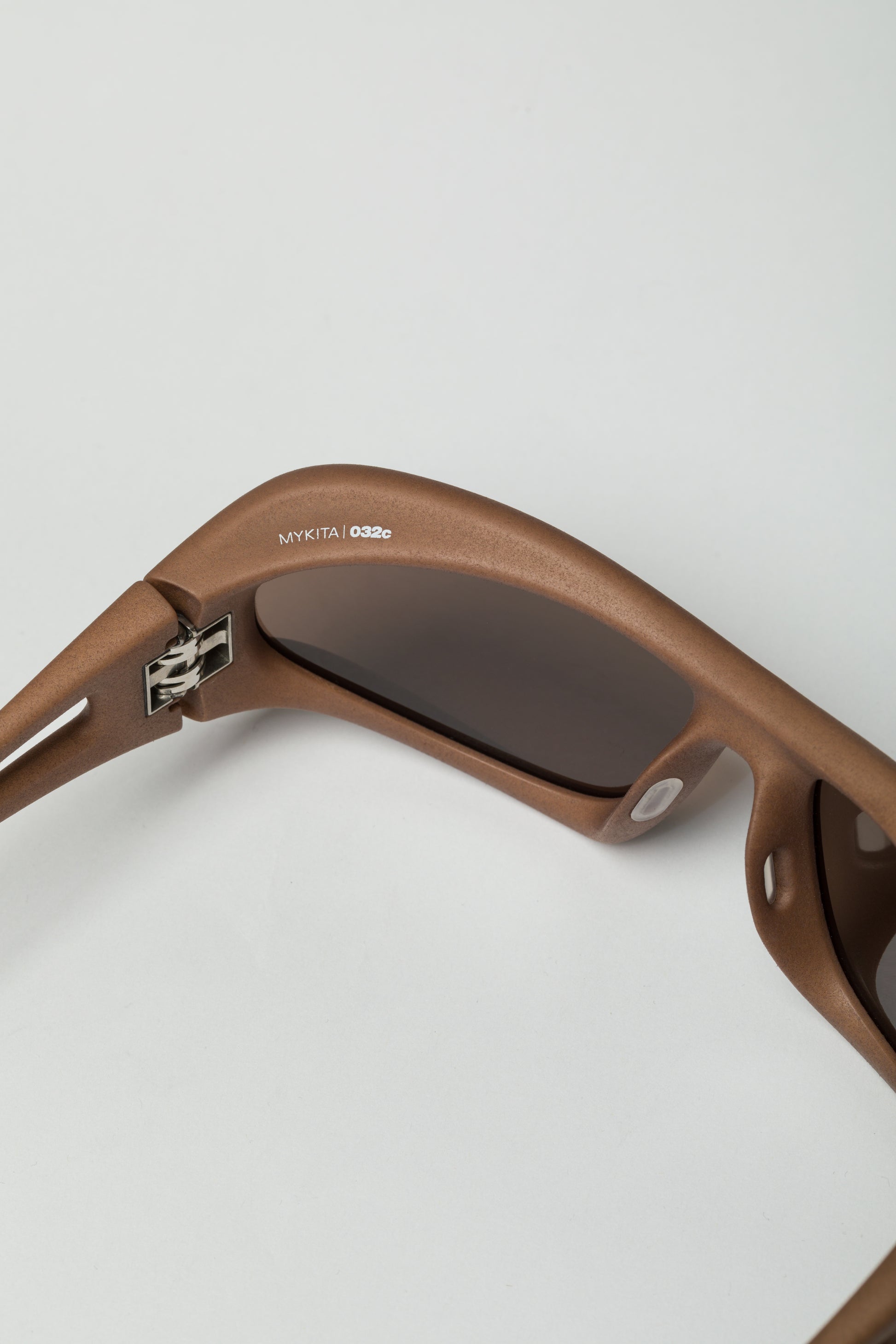 Material: Mylon Frame: MD37 Cashmere Grey Lens: Cedar Brown Shield Hydrophobic nano coating Patented hinge system Individually adjustable Tinted polyamide sun visor with 100% protection against UVA/UVB rays and an anti-reflective inner coating Lightweight Comes with branded eyewear case and cleaning cloth Handmade in Berlin